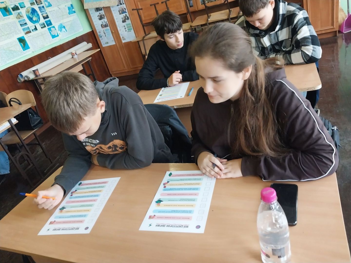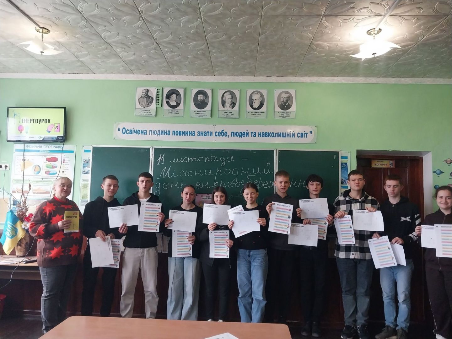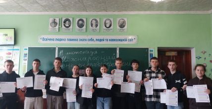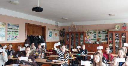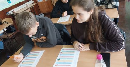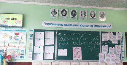 Заняття «Енергоурок» у 10-Б класі відбулося в формі дискусії. Учні поділилися на три групи: «Екологи», «Споживачі енергії» та «Інженери відновлювальної енергетики», кожна з яких мала запропонувати власні рішення на поставлені вчителем виклики. Також учні виконали вправу «Мої енергетичні звички», доповнили схему «Як ми потурбувались про енергоефективність у школі».