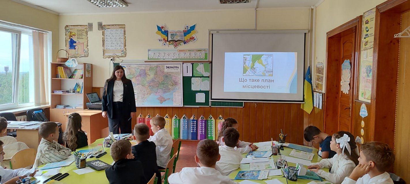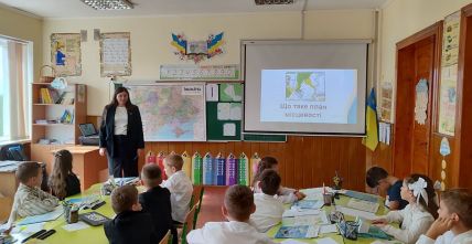 З метою розширення знань про рідний край, уміння орієнтуватися на місцевості, читати умовні позначення та користуватися картами й планами у 4-Б класі Ангеліна НАГІРНЯК провела урок на тему «Що таке план місцевості». Наприкінці уроку учні дійшли висновку про важливість уміння орієнтуватися на місцевості, відзначили, що знання допоможуть у подорожах та щоденному житті.